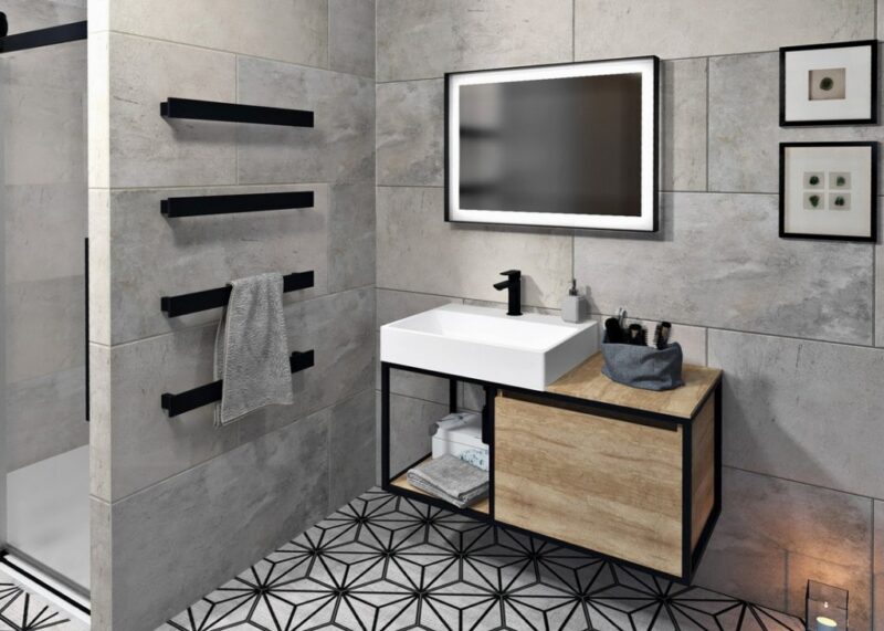 Konštrukcie zo série SKARA sú vhodné do kúpeľní zariaďovaných v modernom aj industriálnom štýle. Skvele ich doplní vysoká skrinka SKARA v rovnakom dekore alebo skrinky a zrkadlá TREOS s rámom v drevenom dekore. Perfektná je aj kombinácia s podsvieteným zrkadlom SORT v čiernom hliníkovom ráme.