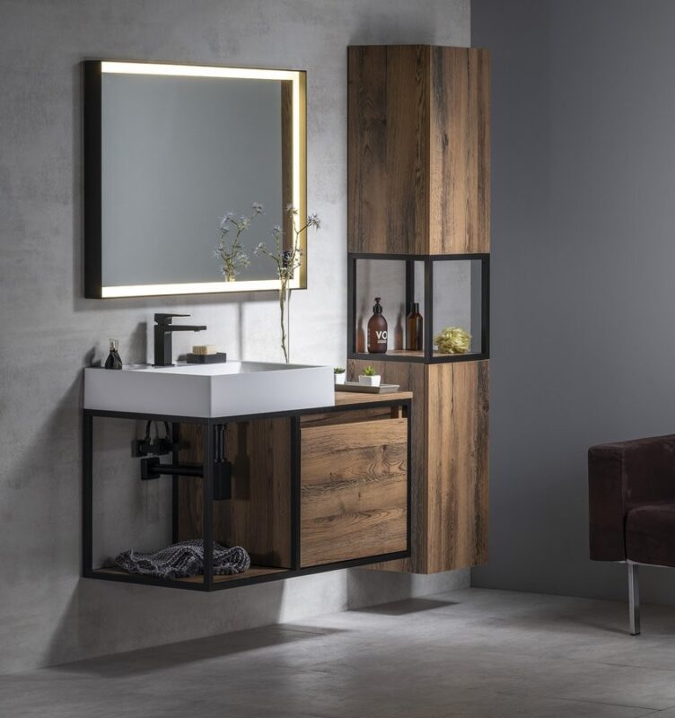 SAPHO – SORT zrkadlo s LED osvetlením 100x70cm, čierna mat ST100