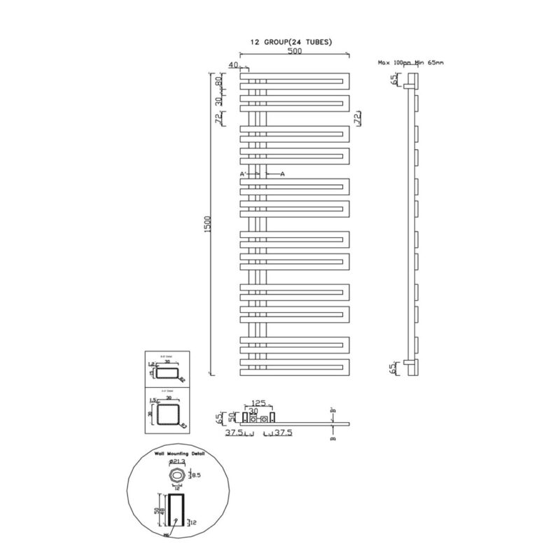 SAPHO – VOLGA vykurovacie teleso 500×1500 nerez mat NR515