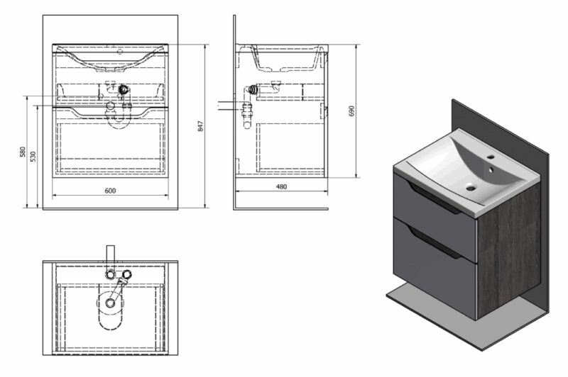 SAPHO – WAVE umývadlová skrinka 60x65x47,8cm, biela/mali wenge WA060-3021