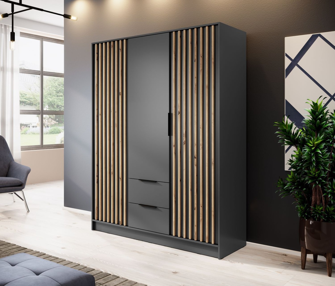 Šatníková skriňa NELA 3D grafit