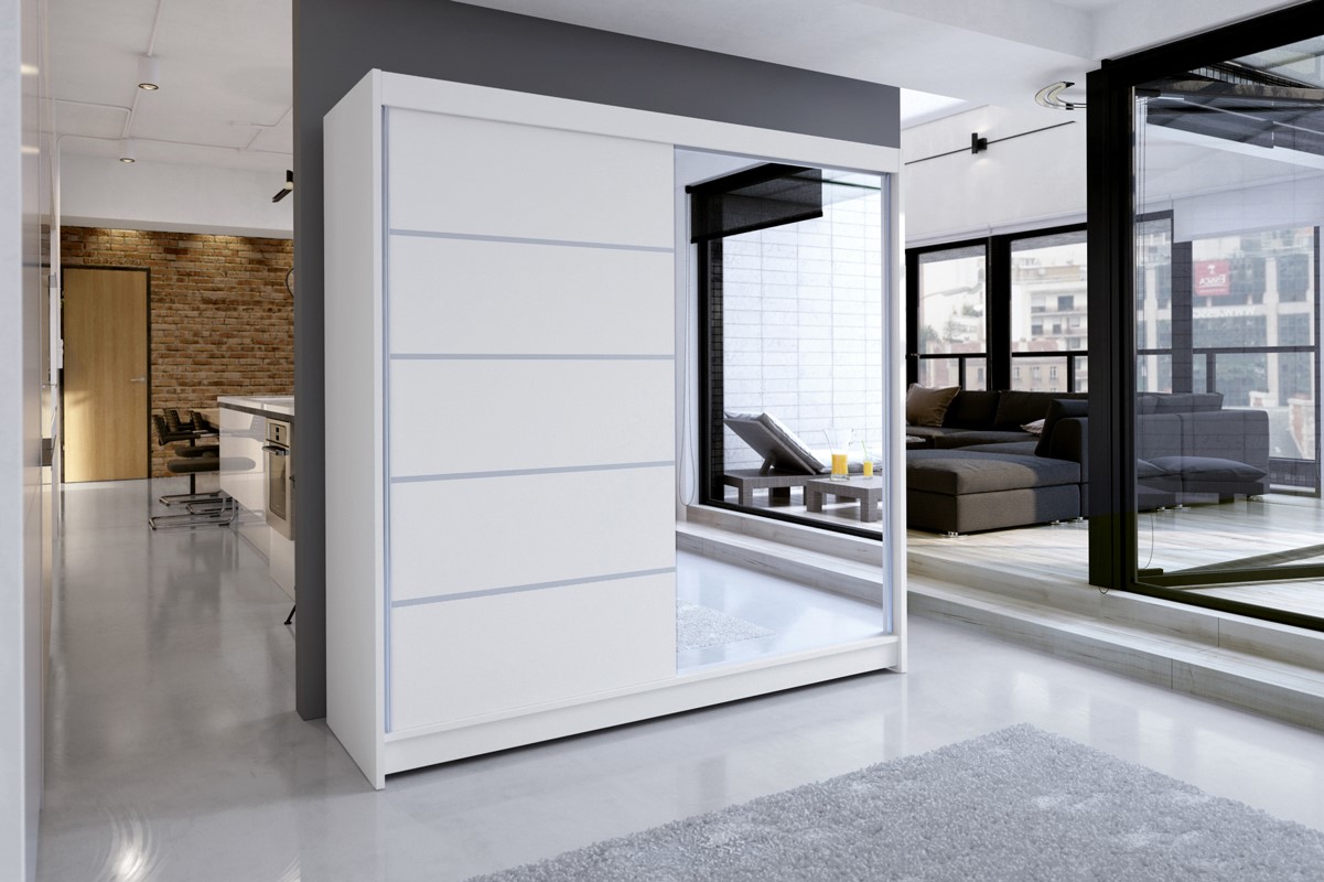 Šatníková skriňa TALLYA 3 je vyrobená v dizajnovom prevedení. Zrkadlová plocha na dverách skrine jej dodáva štýl. Vďaka svojej elegancii je skriňa vhodná do akéhokoľvek priestoru. Je vyrobená z kvalitnej LTD dosky, ktorá nie je náročná na údržbu.Skriňa TALLYA 3 ponúka komfortný úložný priestor. Vo vnútri sa nachádza šatníková tyč a praktické police na odloženie šatstva alebo iných vecí.Rozmer (ŠxVxH) : 180 x 215 x 58Farebné prevedenie : bielaDodávame v demonte.