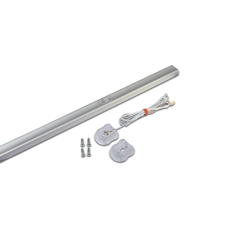 LED osvetlenie šatníkovej tyče so zabudovaným detektorom pohybu Už žiadna tma v šatníku – šatníková tyč vybavená univerzálnymi bielymi LED diódami automaticky osvetľuje vnútro šatníka, pretože do tyče je zabudovaný detektor pohybu. Akonáhle sa otvoria dvere skrine, svetlo sa zapne a poskytne prehľad o skrini. Tyč možno skrátiť jednotlivo na jednej strane – Integrovaný detektor pohybu s 30-sekundovým časom zapnutia – Svietidlo nemožno skrátiť na strane vstupu do elektrickej siete – Na pripojenie je potrebný LED transformátor DC 24 V (pozri príslušenstvo) – Dodáva sa s držiakmi na vloženie, upevňovacími materiálmi a 2,5 m pripojovacím káblom pre LED 24 transformátor