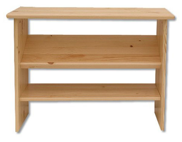 SB130 regál na topánky s 2 policami . Vyrobené z borovicového masívu. Farebné prevedenie: prírodná borovica. Za príplatok ponúkame možnosť namorenia na odtieň dub, jelša a orech. Dodávame v demontovanom stave.