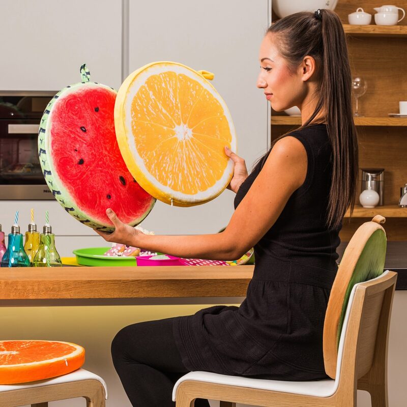 Doprajte si pohodlné šťavnaté posedenie! Originálne okrúhly sedák s motívom Melón, ktorý vyzerá ako živý. Oživí každú kuchyňu či terasu a spríjemní posedenie na tvrdých stoličkách alebo na zemi doma aj vonku.Hebký „zamatový“ poťah má zapínanie na zips – možno ho jednoducho zvliecť a vyprať. Výplň sedáka je z molitanu. Iste oceníte aj praktické pútko na zavesenie. Potlač je obojstranná.