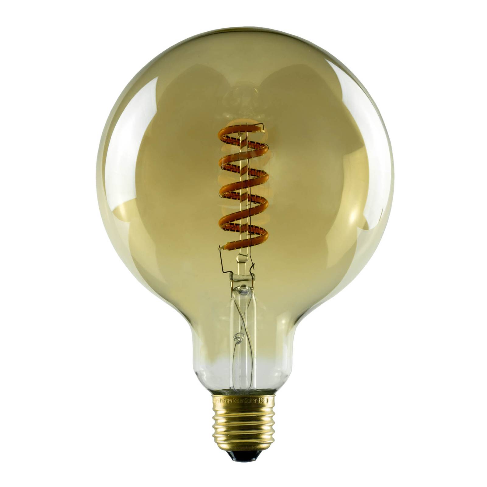 LED žiarovka E27 6W G125, zlatý odtieň s technológiou mäkkých vlákien V sklenenej žiarovke so zlatým odtieňom tejto LED žiarovky boli LED diódy usporiadané do tvaru špirály pomocou patentovanej technológie mäkkých vlákien spoločnosti Segula, v ktorej sú chladiče umiestnené na vláknach. Tým sa zabezpečí konštantný odvod tepla a nie sú potrebné žiadne chladiace plyny. Okrem toho je výhodou tejto technológie vyšší svetelný tok. Dekoratívne svietidlo na použitie v otvorených alebo netienených svietidlách. Špeciálne vlastnosti: – zlatisté tónovanie žiarovky v tvare gule so špeciálnymi LED vláknami v technológii soft filament – extra teplá farba svetla 1 900 K – stmievateľné pomocou mnohých komerčne dostupných stmievačov, napríklad Gira, Eltako, System 2000/3000 a ďalších.