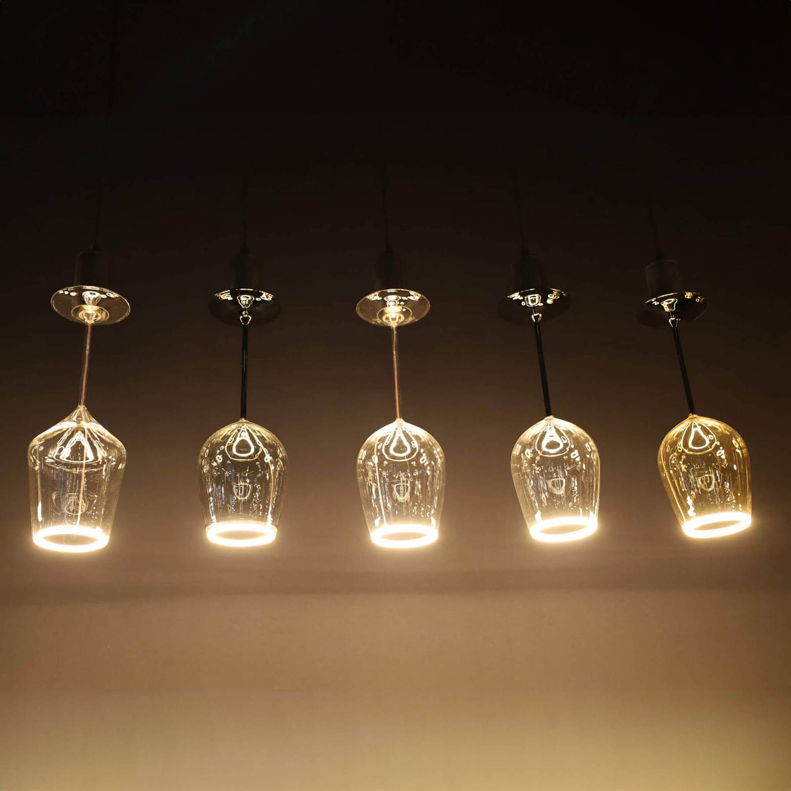 LED žiarovka E27 Floating Rosé Wine, 5 W – číra sklenená žiarovka Táto LED žiarovka E27 zo série Floating je vybavená čírou sklenenou žiarovkou, ktorej tvar je vymodelovaný podľa pohára na ružové víno. Patentovaná technológia mäkkého vlákna a atraktívne odrazy svetla dodávajú svetelnému zdroju dodatočnú dekoratívnu hodnotu. Ideálne pre otvorené svietidlá bez tienidla alebo svietidlá s objímkou – externe stmievateľné (závesný okraj) – mimoriadne teplé biele svetlo – dobré podanie farieb (CRI 90) – ručne vyrobená sklenená žiarovka