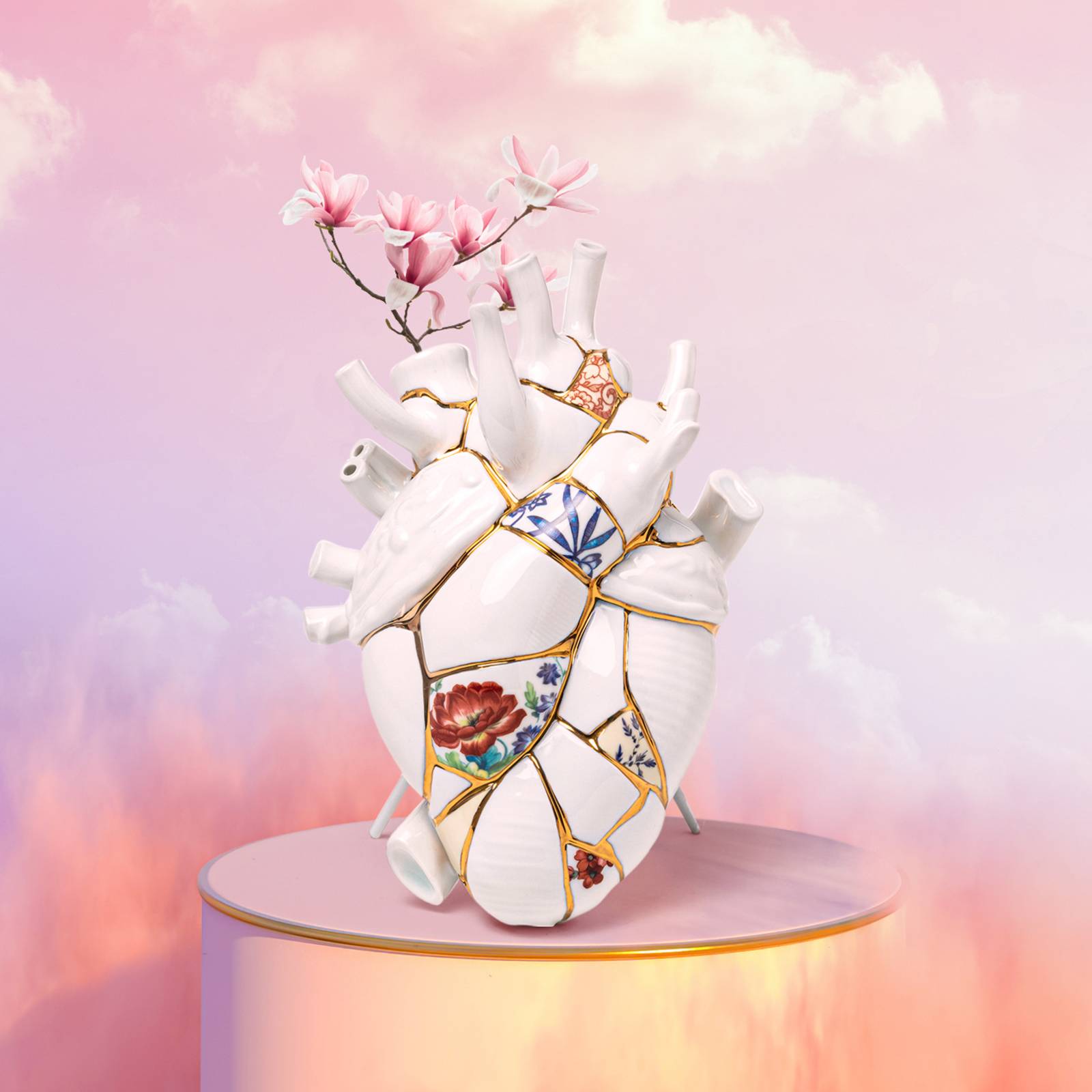 SELETTI Love in Bloom Kintsugi váza, farebná, porcelán, zlatá