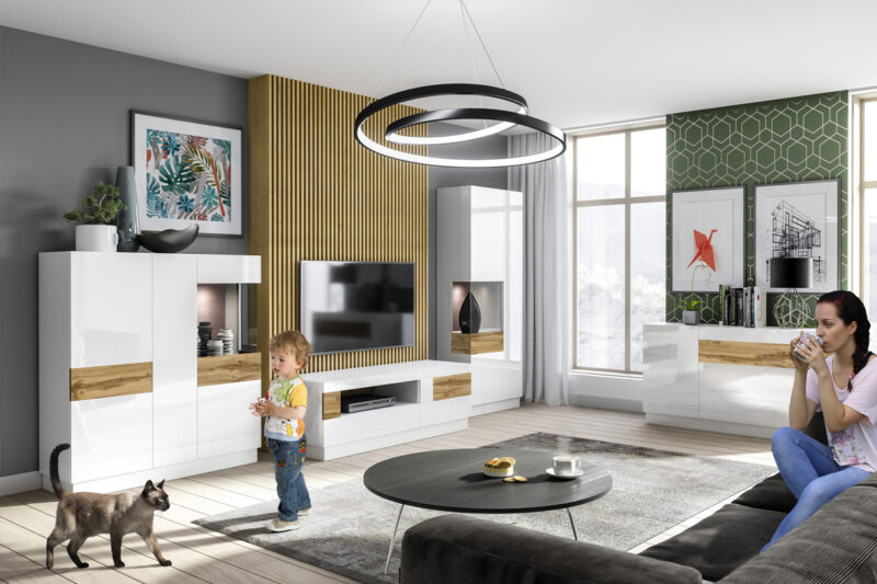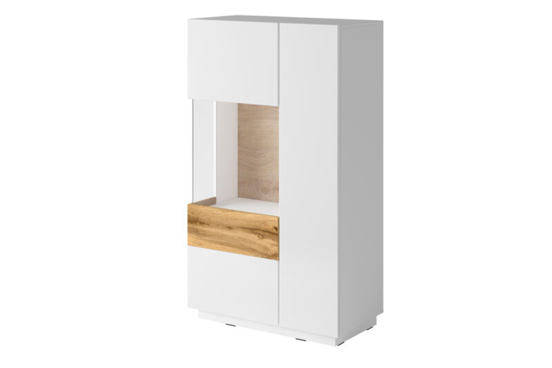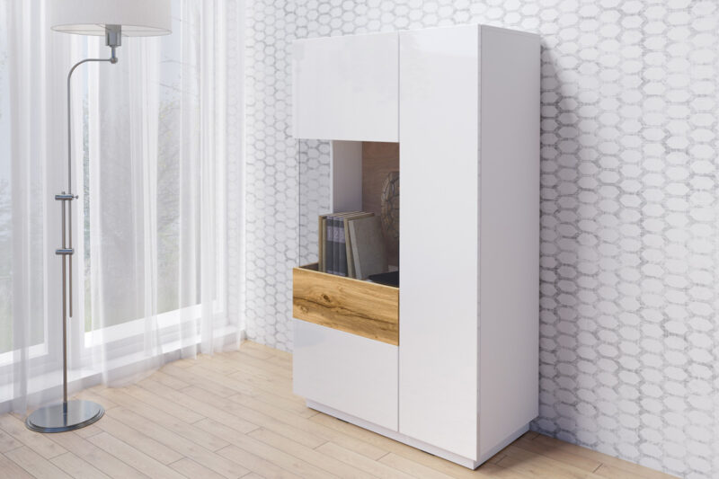 SELINKA 42 dvojdverová vitrína ľavá, biely lesk / dub Wotan