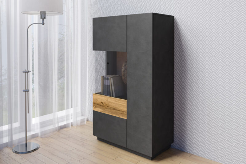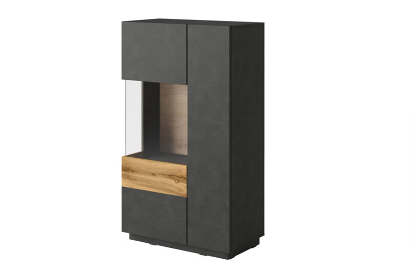 SELINKA je vitrína v modernom prevedení. Patrí k nábytku SELINKA, ktorý je charakteristický svojim kvalitným prevedením a praktickým riešením. Oceníte aj efektné prevedenie a celkový dizajn. Zaujímavé prepojenie dvoch farieb zvýrazňuje jedinečnosť tohto nábytku. Vďaka viacerým farebným kombináciám si z tejto kolekcie vyberie každý.Korpus nábytku je vyrobený z LTD dosky. Dvierka sú z MDF dosky, potiahnutej kvalitnou membránovou fóliou. Tento materiál je nenáročný na údržbu. Vitrína je dvojdverová. Jedny dvere sú plné, druhé presklené.Dvierka sú bezúchytové, využívajú systém push to open.Rozmery(š/v/h):80/139/40 cm.Dodávame v demontovanom stave.