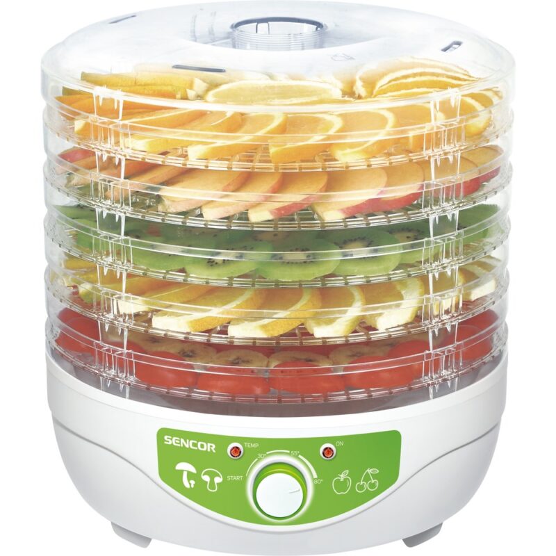 Sušička ovocia má v základnej výbave 5 sušiacich sít, ktorých dizajn mriežky brání vzniku plesní a optimalizuje prúdenie vzduchu. Integrovaný ventilátor napomáha rovnomernému sušeniu na všetkých poschodiach. Priehľadné veko a sitá umožňujú okamžitú vizuálnu kontrolu nad stavom sušenia.Sušička potravín je vhodná na prípravu napríklad: