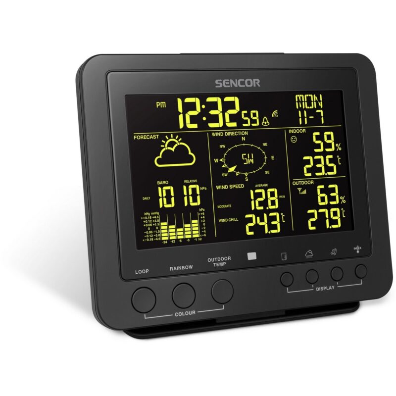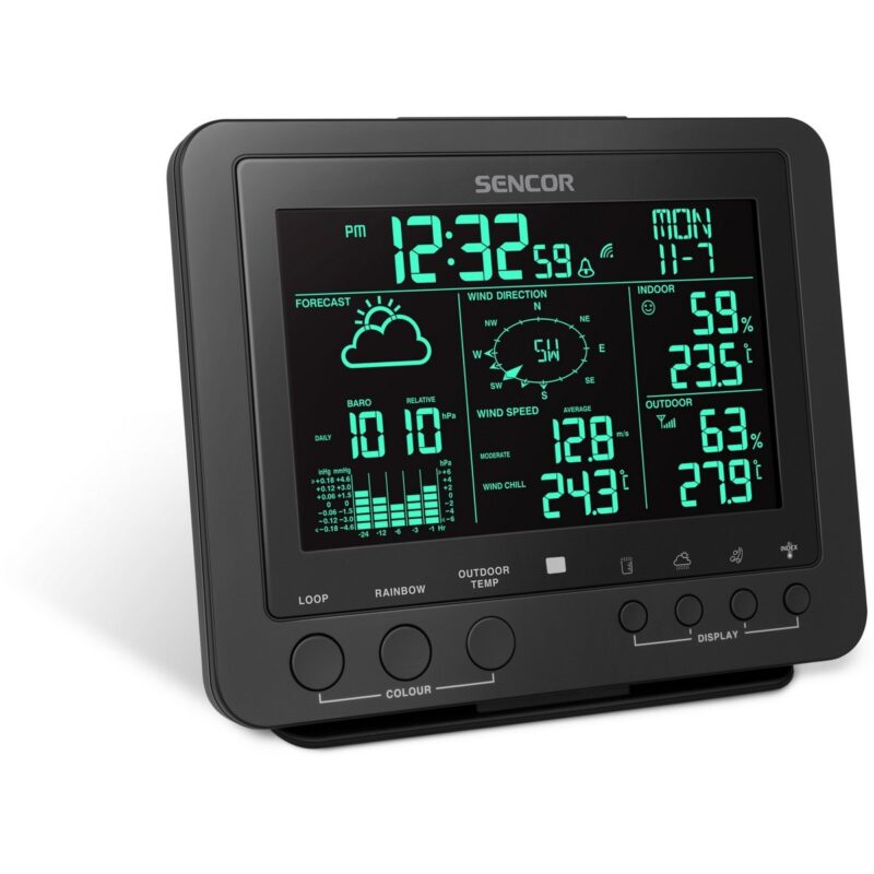Táto profesionálna meteostanica meria vonkajšiu a vnútornú teplotu, barometrický tlak v relatívnych a absolútnych hodnotách, dažďové zrážky pomocou denného, týždenného a mesačného množstva dažďa (mm/in). Displej ukazuje index počasia pre vnútorný rosný bod, vonkajší chlad vetra, poryv vetra alebo jeho priemernú rýchlosť (v mph, m/s, km/h, uzloch) vrátane smeru s rozlíšením 16 hodnôt. Ďalej zobrazuje dažďovej zrážky v stĺpcovom grafe histórie (uplynulých 5 dní) alebo zmeny tlaku (za 1, 3, 6, 12 alebo 24 hodín). Samozrejmosťou je tiež ukazovateľ úrovne komfortu a výstrahy pred poľadovicou.LED indikátor vás bude upozorňovať na výstrahy ohľadom teplôt, vlhkosti, rýchlosti vetra a dažďových zrážok. Môžete si zvoliť dva stupne varovania, to vysoké a nízke. Záznamy o meraniach sú uchovávané v pamäti spolu s dátumom a časom obstarania. Displej takisto zobrazuje ikonu indexu počasia s predpoveďou na 12 – 24 hodín, ktorá je založená na zmene tlaku a teploty. Zaujímavá je funkcia tzv. pred – alarmu, ktorý upozorní na nízku teplotu.Displej True color s 256 premenlivými farbami a uhlopriečkou 5,8 „(14,7 cm) má extrémne vysoký kontrastný pomer, široké pozorovacie uhly, výbornú čitateľnosť aj na slnku a možnosť zvoliť si 3 úrovne jasu. Môžete si navoliť 3 režimy premenlivých farieb s pozadím True black. Prvým z nich je slučka, ktorá automaticky premieta všetkých 256 farieb za sebou. Ako druhú možno nastaviť dúhu s 8 farbami. Tretí z režimov je vonkajšia teplota, kedy sa volí 17 premenlivých farieb podľa nej.
