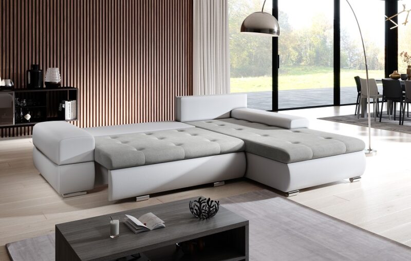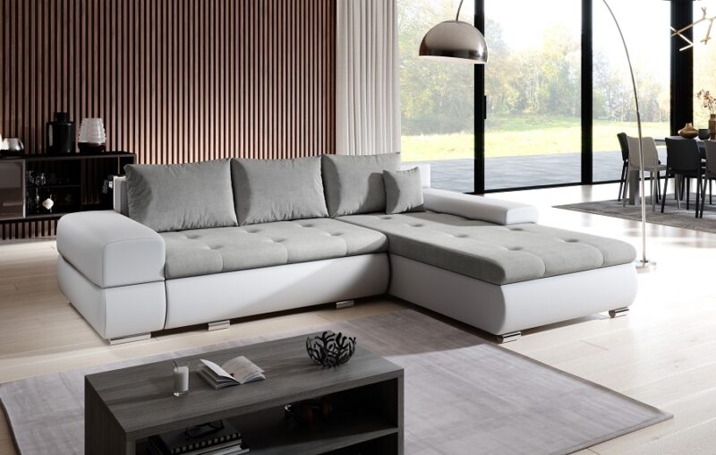 Moderná sedačka SENNEGAL MINI Vám poskytne pohodlné sedenie a oddych. Sedačka disponuje funkciou rozkladu a úložným priestorom. Po rozložení vznikne plocha na príležitostné spanie o rozmere 150 x 200 cm. Úložný priestor má rozmer 130 x 70 cm.Sedačka je potiahnutá látkou Orinoco 90 v kombinácii s ekokožou Madryt 120. Je tvorená vlnovcovou pružinou a PUR penou s hustotou T-30. Nožičky sú pochromované.Rozmery (š,v,h): 275 x 83 x 190 cm. Výška sedu 39 cm. Výška sedačky bez vankúšov 80 cm. Hĺbka sedu bez vankúšov 90 cm. Hĺbka sedu s vankúšmi 65 cm. Rohová sedačka je v univerzálnom prevedení. Môžete si ju zložiť v ľavom aj pravom prevedení rohu.Dodávame v demontovanom stave.