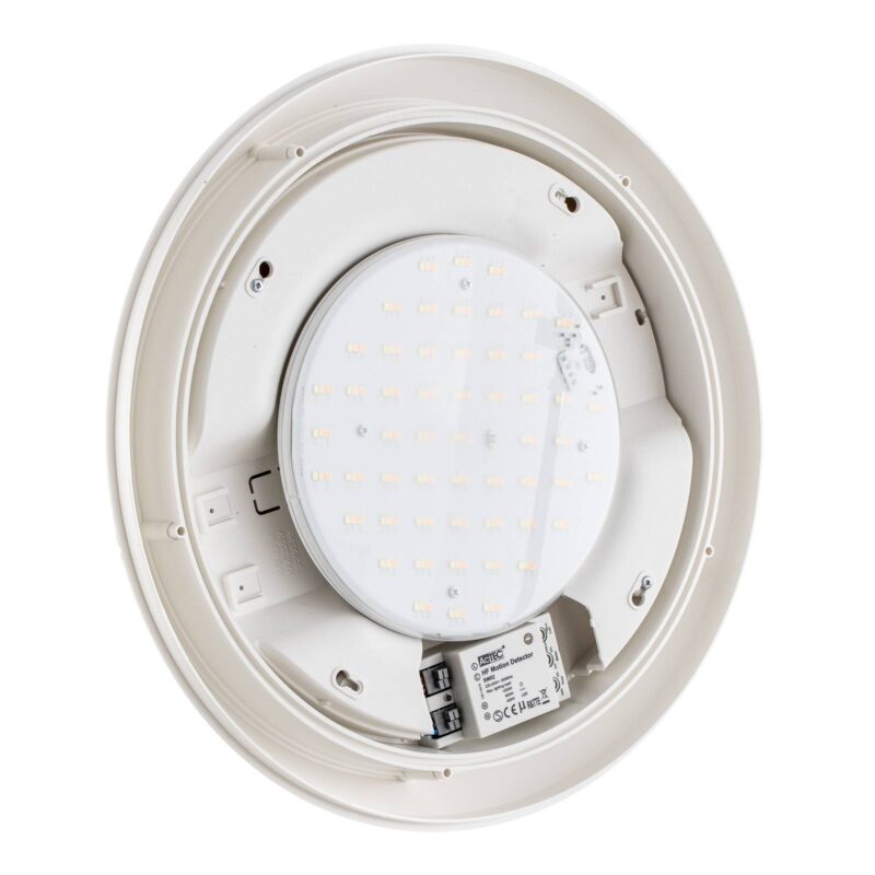 Biele LED senzorové stropné svetlo Umberta, odolné voči morskej vode Najnovšie technológie a jednoduchý, ale praktický zovňajšok nechávajú vyniknúť stropné LED svetlo Umberta. Je odolný voči morskej vode, odolný voči korózii a UV žiareniu a je vybavený detektorom pohybu a snímačom denného svetla. Dodávaný svetelný zdroj LED je možné počas inštalácie nastaviť pomocou vypínača na požadovanú farba svetla : teplá biela, univerzálna biela alebo denné svetlo. – Detektor pohybu: nastaviteľný rozsah 1 – 5 m; Uhol detekcie 30 ° – 150 ° – možno namontovať aj ako nástenné svietidlo
