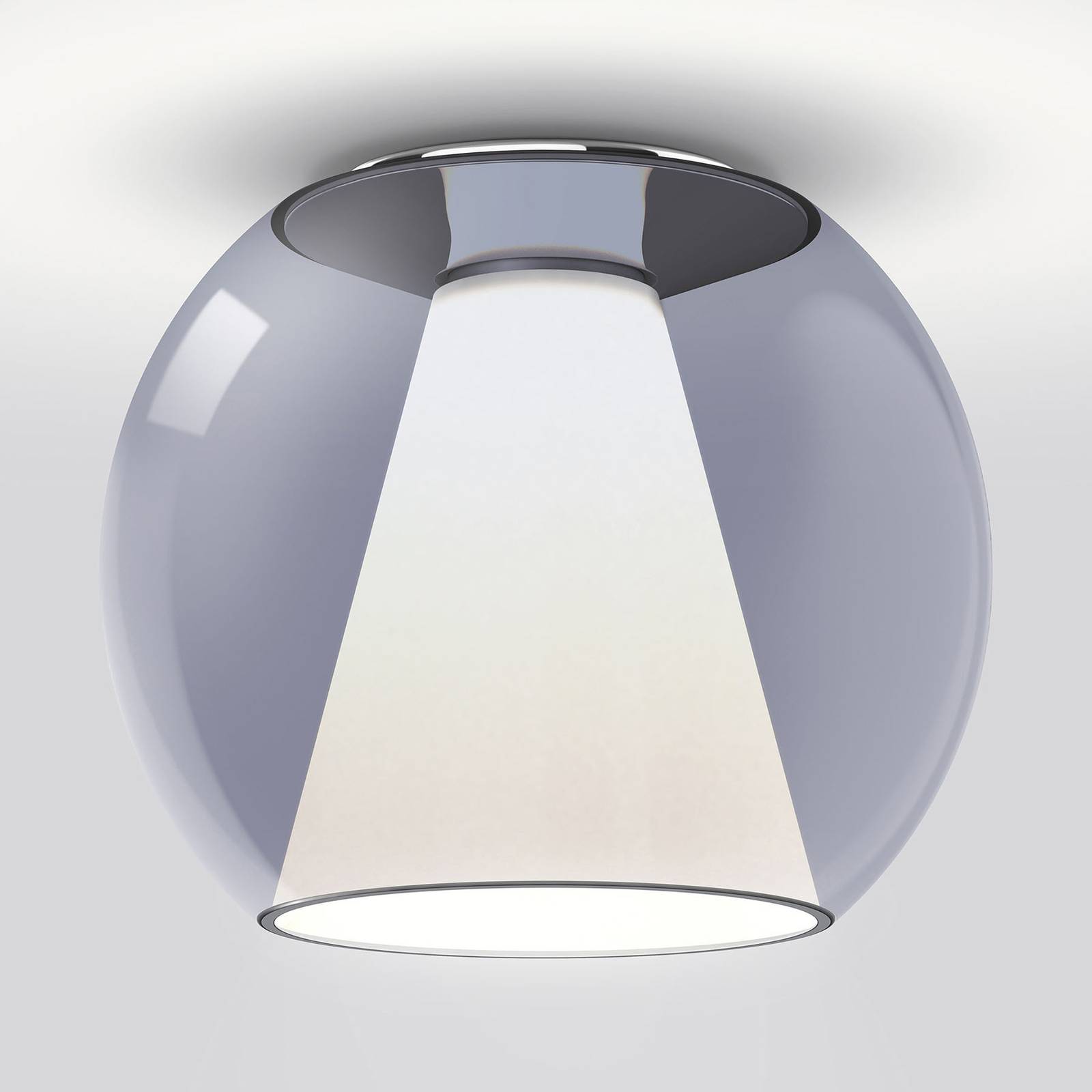 Stropné svietidlo Draft LED s guľou z fúkaného skla a opálovým vnútorným reflektorom So stropným svietidlom Draft LED sa archetypálne guľovité svietidlo stáva objektom modernej stručnosti a dokonale vyváženého svetelného efektu. Guľa z priehľadného, ručne fúkaného skla a opálový vnútorný reflektor rozptyľujúci svetlo vytvárajú vzrušujúci kontrast. Svetelný zdroj LED je umiestnený hlboko vo vnútri kónického vnútorného reflektora a poskytuje mäkké rozptýlené okolité svetlo všade okolo, ako aj priame svetlo smerujúce nadol. Difúzny disk na spodnom konci zabezpečuje mimoriadne jemné vyžarovanie svetla a rovnomerne osvetlené plochy. Vynikajúce podanie farieb a možnosť stmievania osvetlenia pomocou externého stmievača (TRIAC) sú ďalšie vlastnosti stropného svietidla Draft LED. V súkromných priestoroch alebo v najrôznejších komerčných objektoch, jednotlivo alebo zoskupené do niekoľkých svietidiel – stropné svietidlo Draft LED spája modernú interpretáciu nadčasových foriem s pokročilou technológiou.Draft je návrhom Jeana-Marca da Costu, spoluzakladateľa spoločnosti serien.lighting. Táto nemecká spoločnosť vyvíja a vyrába inteligentné riešenia osvetlenia s redukovaným moderným dizajnom a sofistikovanou technológiou.