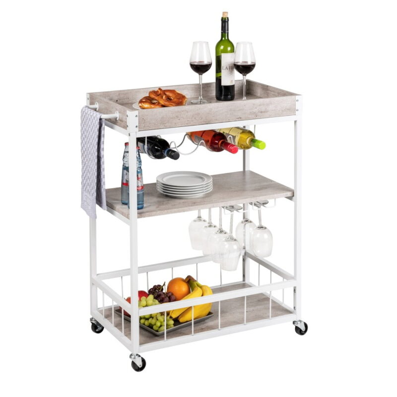 Servírovací stolík Rustico od značky Wenko ponúkne tri rôzne police, rovnako ako držiak na fľaše a poháre. Zatiaľ čo štyri kolieska zaistia jeho plynulú jazdu, dve aretačné brzdy sa postarajú o stabilný postoj.
