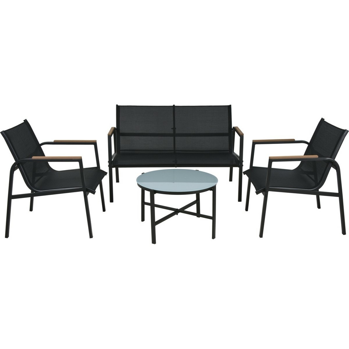 Set záhradného nábytku Magnus je ideálnou voľbou pre každú záhradu, terasu alebo balkón, ktoré si zaslúžia štýlové a pohodlné sedenie. Tento set zahŕňa 4 kusy nábytku s kvalitnou oceľovou konštrukciou, ktorá je zinkovaná a práškovo lakovaná v elegantnej čiernej farbe, čo zaisťuje odolnosť proti poveternostným vplyvom a dlhú životnosť.Set obsahuje: