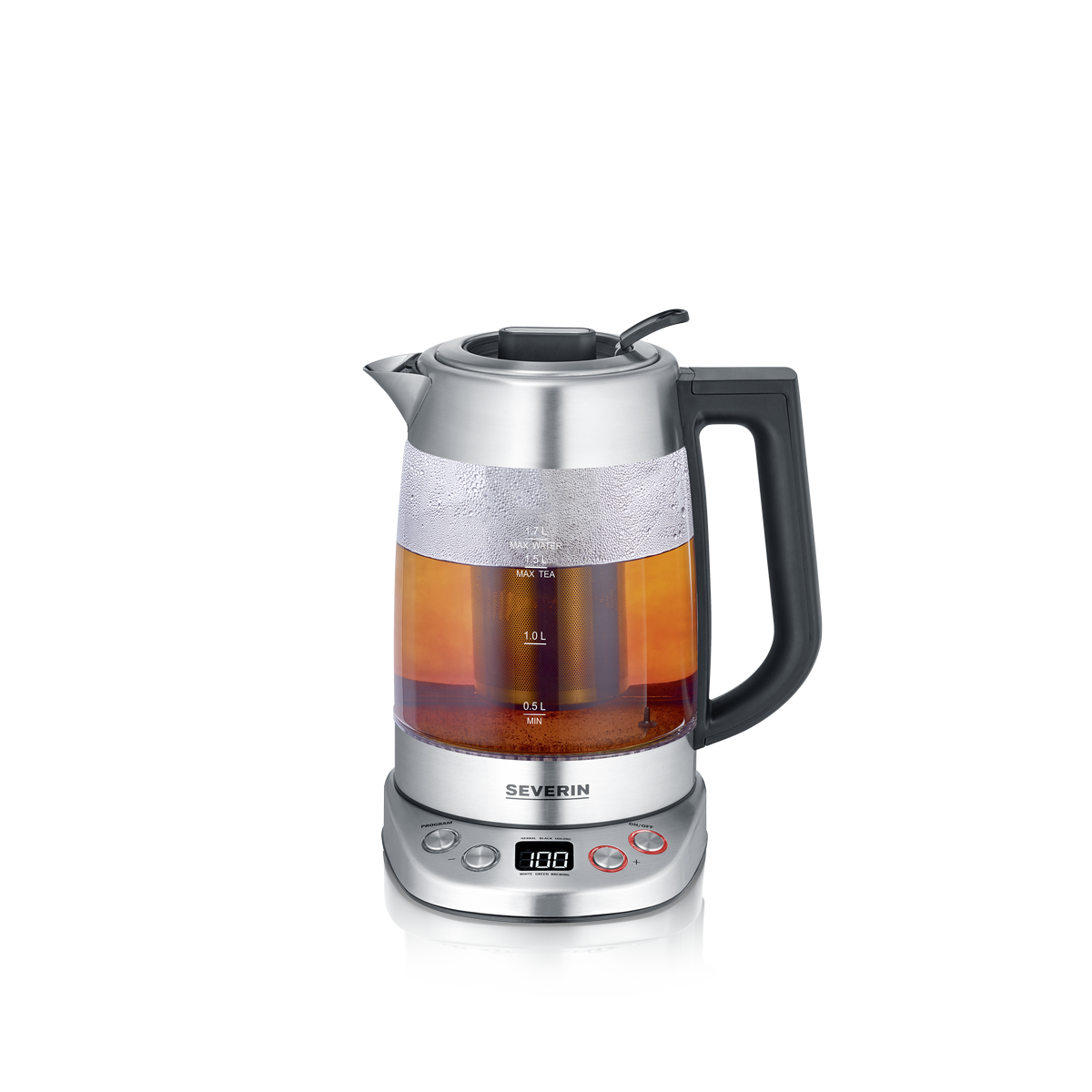 Kanvica je ideálna pre milovníkov kvalitného čaju, ktorí ocenia presnosť a pohodlie pri príprave. Vďaka funkcii „Easy Tea Select“ s piatimi prednastavenými programami pre rôzne druhy čajov (ovocný, čierny, oolong, biely a zelený čaj) si môžete nastaviť ideálnu teplotu a dobu varenia podľa svojho priania.Výkonný čajovar s výkonom 3000 W disponuje kapacitou 1,7 l vody a 1,5 l čaju. Je vybavený vysoko kvalitnými materiálmi, ako je nehrdzavejúca oceľ a sklo odolné voči tepelným šokom.Presný teplotný senzor zaisťuje optimálne podmienky na prípravu čaju a funkcia udržiavania teploty po dobu 30 minút vám umožní užívať si teplý čaj kedykoľvek. Vďaka 360° bezdrôtovému systému je čajovar pohodlný na použitie z akéhokoľvek smeru. Čajový filter je jemný, vyberateľný a vyrobený z nehrdz. ocele. Pre ľahké čistenie je čajovar vybavený odnímateľným vekom a širokým otvorom.