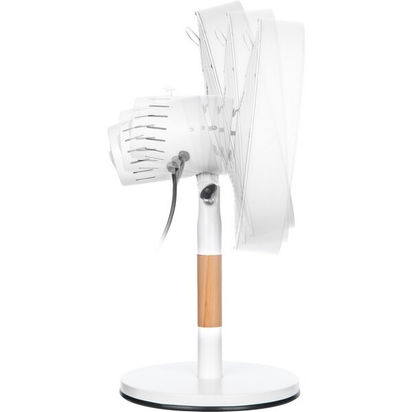 Stolný ventilátor v decentnom bielom prevedení vás príjemne osvieži v sparných dňoch. Ventilátor má vertikálne naklápanie, nastaviteľný uhol sklonu a automatickú horizontálnu rotáciu v uhle 80 ° s možnosťou vypnutia.Vlastnosti a špecifikácie: