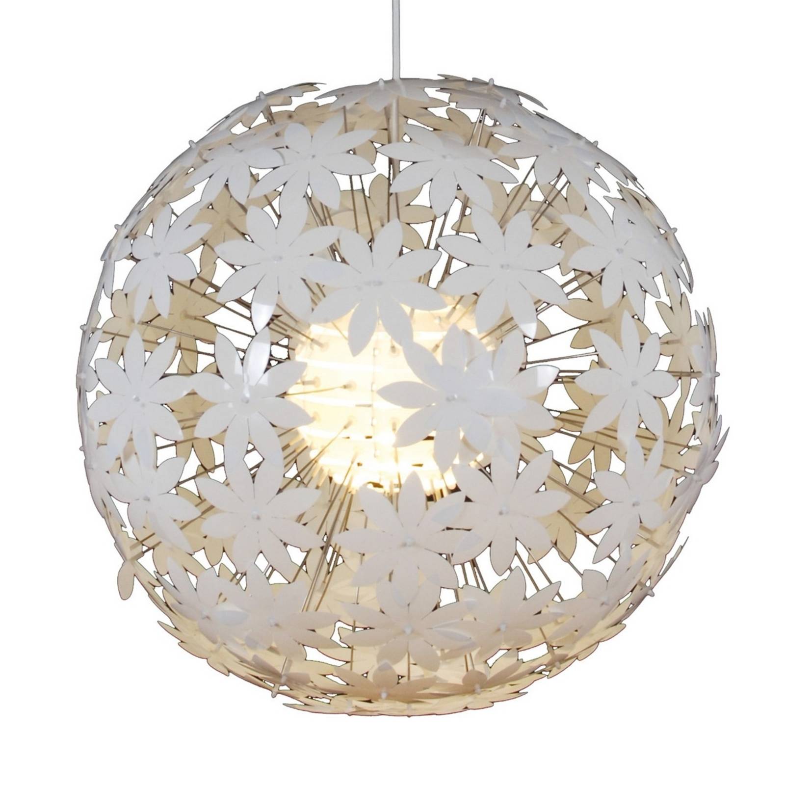 Pekná závesná lampa Young LivingTáto závesná lampa s kvetinovým vzhľadom, vyrobená v štýle moderného bývania, sa hodí najmä do obývačky alebo na chodbu. Jednotlivé plastové prvky predstavujú krásne tvarované kvety a spolu tvoria akúsi guľu, v ktorej sa nachádza svetelný zdroj a po zapnutí vytvára špeciálne efekty. Biely povrch poskytuje harmonický výraz a zaručuje, že závesné svietidlo sa hodí k mnohým moderným štýlom. Upozorňujeme: Závesné svietidlo sa dodáva nezmontované, jednotlivé prvky je potrebné ešte zapojiť.