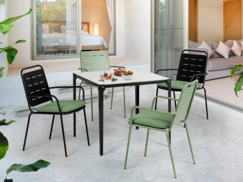 Shogun jedálenská stolička zaujme svojím minimalistickým a vzdušným dizajnom. Celooceľová konštrukcia s čiernym povrchom odolným voči poveternostným vplyvom ponúka pevnosť aj ľahkosť. Vďaka stohovateľnosti je praktická a nenáročná na skladovanie.
