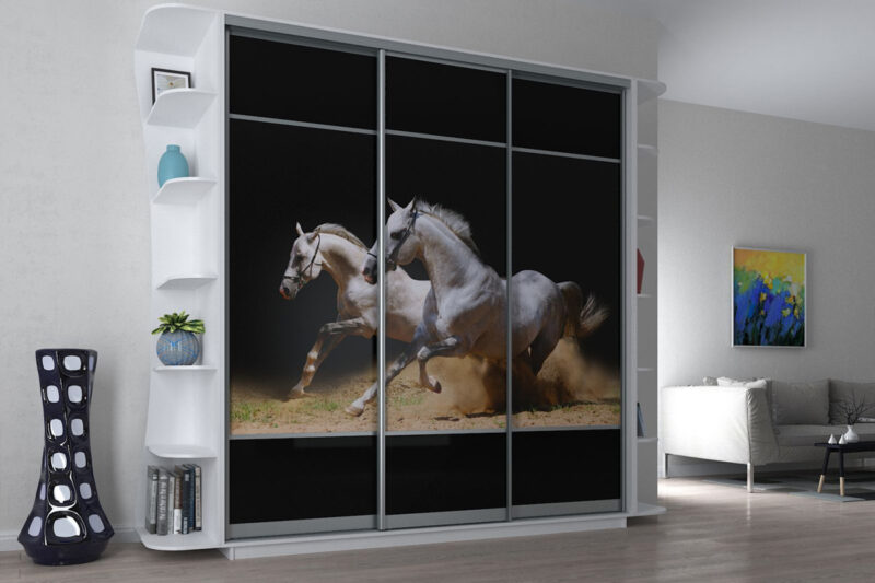 SIDON 220 je trojdverová šatníková skriňa so zásuvným systémom otvárania dverí. Zaujme nielen svojim dizajnom ale aj cenou. Je vhodná najmä do spálne, ale svoje miesto si nájde aj vo väčšej vstupnej hale či v tínedžérskej izbe. Je určená pre zástancov moderných a trendových štýlov. Praktické úchyty na manipuláciu s dverami sú umiestnené po celej výške dvier. Na dverách nájdete štýlový obrázok koní s efektným čiernym pozadím.Korpus nábytku je vyrobený z kvalitnej LTD dosky, vo farbe biely diamant. Kovanie a lišty sú hliníkové. Tento materiál sa ľahko udržiava, čo ocení každý majiteľ. Bočný policový regál nie je súčasťou skrine, môžete si ho však doobjednať (viď doporučené produkty).Výnimočnosť skrine je v jej netypickej výške až 220 cm, čo Vám poskytne väčší úložný priestor. Vnútorný priestor je členený a ponúka viacero políc a 2 šatné tyče na vešanie oblečenia.Rozmery (v/š/h): 220 x 220 x 60 cm. Dodávame v demonte. Farebný odtieň na fotke môže mať malé odchylky od reálnej farby materiálu.