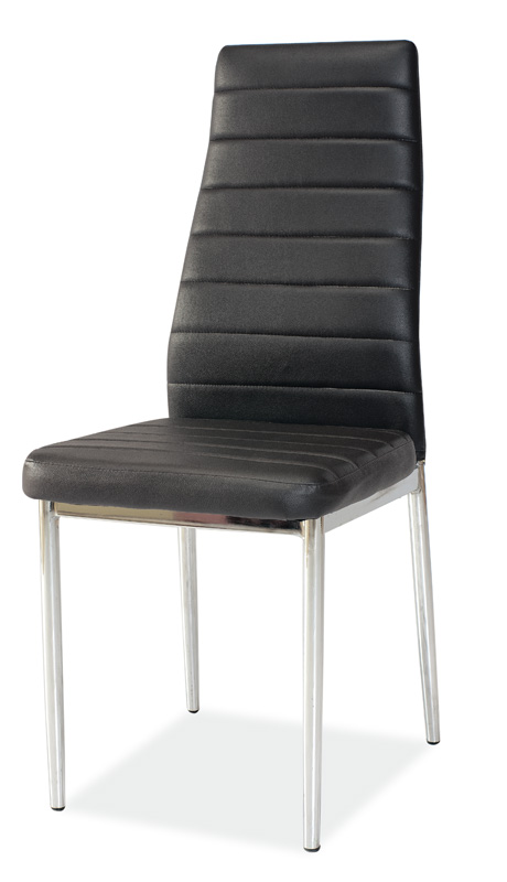 Čalúnená stolička H-261 je veľmi elegantná a moderná stolička s predĺženým čiernym operadlom pre pohodlné sedenie. Poťah vyrobený z eko-kože dopĺňa kovová konštrukcia v chrómovom prevedení. Stolička je vhodná do jedální, kancelárií či zasadacích miestností. Výška sedu je 45 cm a hĺbka sedu je 38 cm.