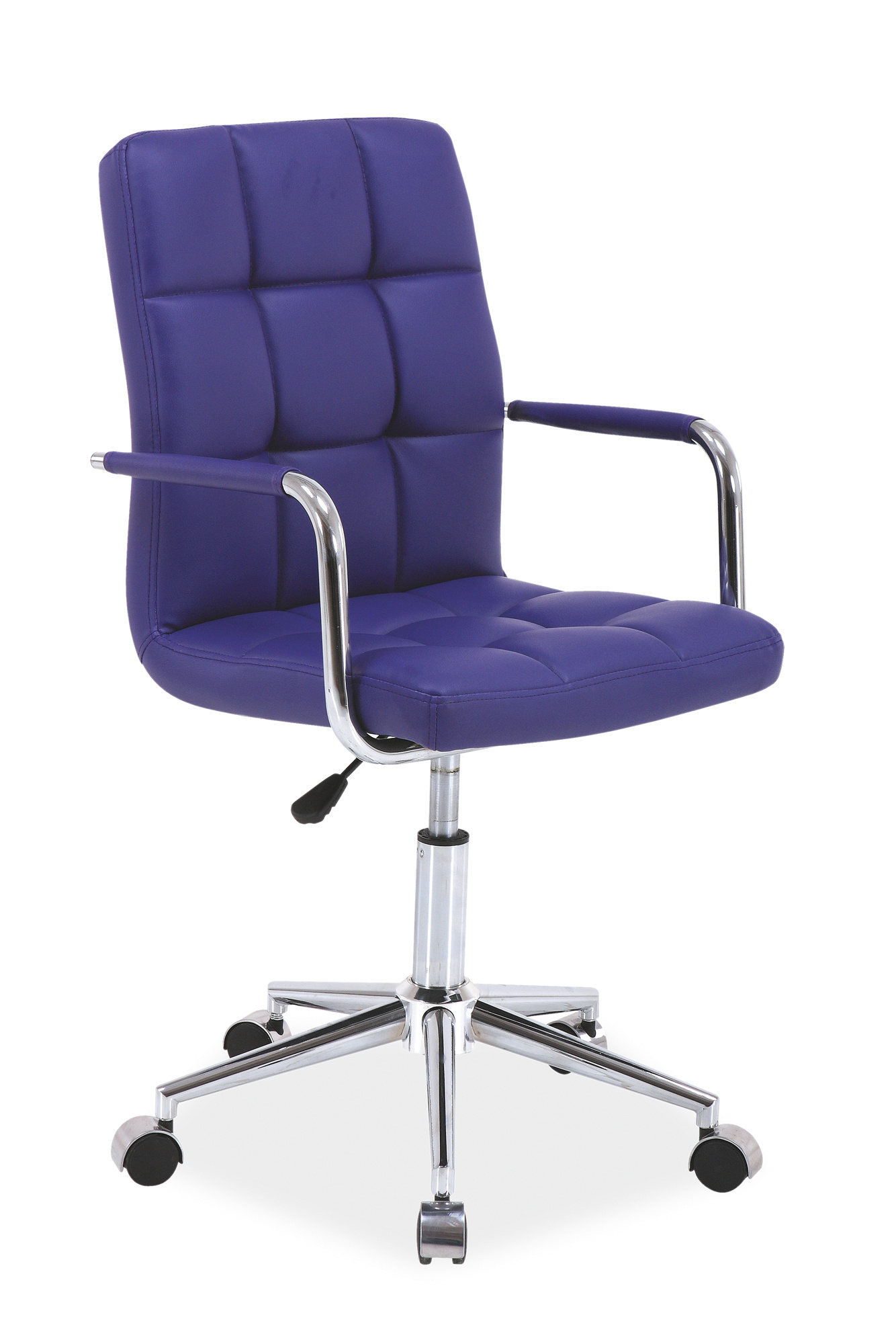 Moderná kancelárska stolička Q-022 predstavuje komfortný kúsok nábytku s nastaviteľnou výškou sedadla v rozmedzí 45-55 cm. Rozmery stoličky sú (ŠxHxV): 51x40x87-97 cm. Prešívaný sedák a opierky sú potiahnuté fialovou ekokožou. Kovová konštrukcia vo farbe chrómu je doplnená plastovými kolieskami,…