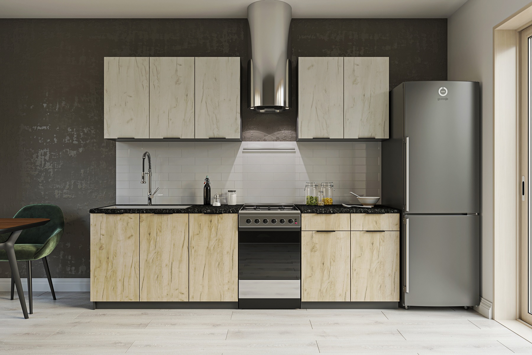SILVER kuchynská linka 200, white craft oak / grey craft oak