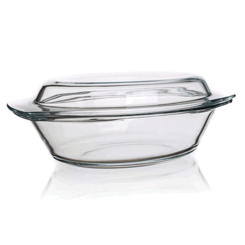 Oválny pekáč s vekom je vyrobený z tvrdého boritokremičitého skla, čo je varné sklo, ktoré patrí v modernej kuchyni medzi žiadané materiály. Je veľmi odolné mechanicky aj teplotne (odolnosť +300 / -40 stupňov). Výhodou je dlhá životnosť, hygienická nezávadnosť (je hladké a neporézne) a ľahká údržba – možno umývať v umývačke riadu.