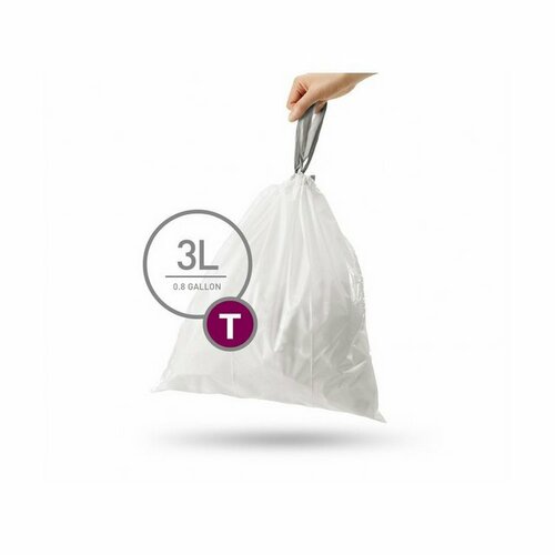 Extra silné sťahovacie vrecia do odpadkového koša – veľkosť T. Objem 3 l, dvojité švy, pevná sťahovacia šnúra. V balení 40 ks. Vhodné pre koše značky Simplehuman.Extra odolný plast a hrubé dvojité švy sa postarajú o to, aby nedochádzalo k nechcenému prasknutiu alebo pretrhnutiu vreca. Navyše vďaka pohodlnej sťahovacej šnúre jednoducho zatiahnete za dve strany šnúry a celé vrece zdvihnete. Potom ho môžete pohodlne odniesť do popolnice.