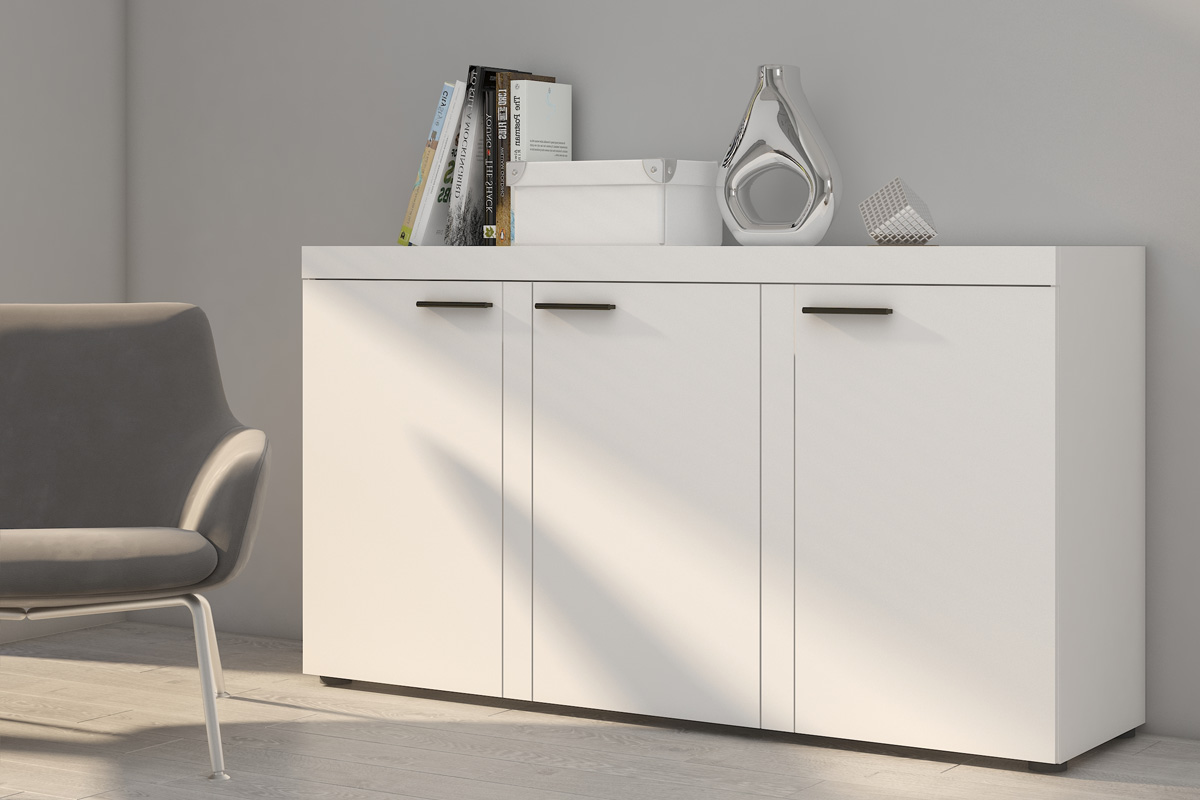 Komoda BRUMA zaujme aj náročnejších užívateľov. Je v dizajnovom a modernom prevedení.Je vyrobená z kvalitných LTD dosiek, ktoré sa ľahko udržujú. Jej farebné prevedenie je v bielej farbe.Komoda je trojdverová. Vo vnútri sa nachádzajú praktické police na uloženie oblečenia a podobne.Môžete si ju dokúpiť k obývacej stene BRUMA, ktorá je v rovnakom farebnom prevedení.Na výber sú aj ďalšie farby komody.Rozmery (š,v,h): 148.8 x 82 x 40.3 cmDodávame v demonte.