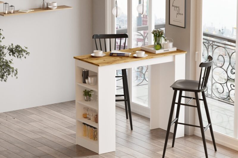 Barový stôl STYLE 1Hľadáte dokonalý stredobod pre vašu obývaciu izbu alebo jedáleň? Predstavujeme STYLE 1, barový stôl, ktorý kombinuje eleganciu a funkčnosť v škandinávskom štýle.Typ tovaru: Barový stôlMiestnosť: Obývacia izba, jedáleňRozmer: 120 x 51.6 x 101.8 cmFarba: Biela kombinovaná s borovicouVybavenie: Regál pre extra úložný priestorŠtýl: ŠkandinávskyVychutnajte si kombináciu čistej bielej a autentickej borovice v jednom. Tento stôl nielen že skvostne vyzerá, ale aj praktický regál ponúka priestor pre vaše nápoje, knihy alebo dekorácie. STYLE 1 je ideálnou voľbou pre tých, ktorí hľadajú moderný kúsok nábytku s dotykom severskej elegancie. Pridajte tento nádherný kúsok do svojho interiéru a vytvorte útulný priestor pre rodinu a priateľov.Dodávame v demonte.