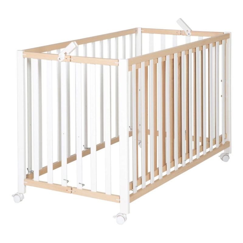 Skladacia postieľka na kolieskach v bielo-prírodnej farbe 60×120 cm Fold up – Roba