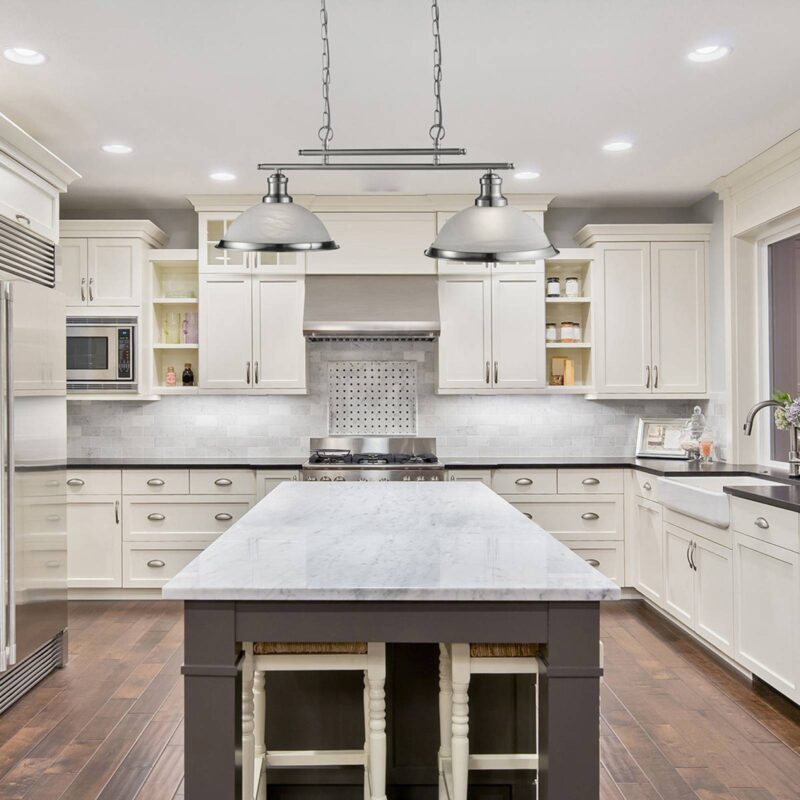 Nádherne navrhnutá závesná lampa Bistro 2 fl. so sklenenými tienidlami Očarujúca závesná lampa Bistro s dvoma elegantne prezentovanými sklenenými tienidlami poskytuje dvojnásobnú svietivosť. Pomocou dvoch závesných reťazí možno svietidlo ľahko pripevniť k stropu. Pod týmito dvoma konzolami nájdete najprv o niečo kratšiu a potom dlhšiu kovovú skrutku, ktoré sú k sebe navzájom pripevnené. Tie dodávajú svietidlu veľmi dynamický vzhľad a zároveň slúžia ako držiak dvoch tienidiel. Tie majú svoje miesto vľavo a vpravo pod dlhou kovovou tyčou. Tienidlá sú vyrobené z matného bieleho skla a vďaka ľahkému mramorovaniu získavajú dymový nádych. Okrem toho majú malý, ale elegantný doplnok: úzky kovový pásik na spodnom okraji. V tienidlách sú nainštalované zásuvky E27
