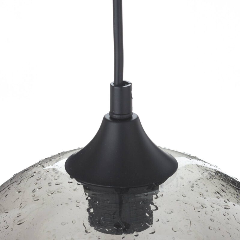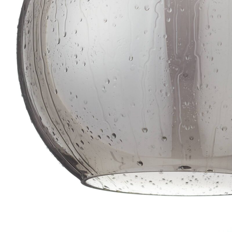 Efektné sklenené závesné svietidlo Bergen s dažďovým efektomTo, že elektrina a voda spolu bežne neladia, by mal vedieť každý, ale práve tieto dva prvky sa v závesnom svietidle Bergen dostali do symbiotického spojenia. Jediný rozdiel je však v tom, že v dizajne sa nepoužíva skutočná voda, ale iba umelý efekt dažďa na sklenenom tienidle, ktorý vytvára tento fascinujúci vzhľad. Vďaka tomuto nezvyčajnému vzhľadu lampa nielenže dosahuje jedinečný a fascinujúci efekt v modernej obývacej izbe, ale prináša do miestnosti aj zvláštnu svetelnú náladu, pretože dymovo sivé sklenené tienidlo vytvára mäkké a rovnomerné rozptýlenie svetla. Zodpovedajúce, takzvané žiarovky Rustika sú súčasťou príslušenstva a možno ich objednať súčasne.