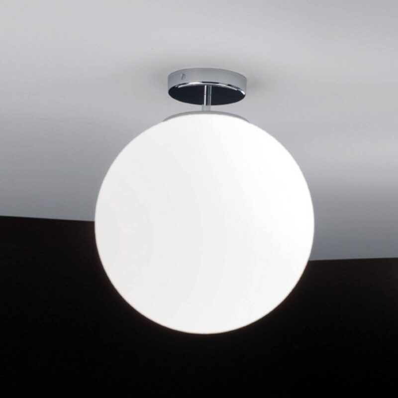 Sklenené stropné svietidlo Sferis. Sklenené stropné svietidlo Sferis sa vyznačuje sférickým opálovo bielym tienidlom a elegantne vyzerajúcou kovovou stropnou konzolou. Jednoduchý, integrujúci dizajn bol vyvinutý tak, aby bol veľmi odolný voči rýchlo sa meniacim trendom – sklenené stropné svietidlo Sferis je vždy moderné a zaujme neoslňujúcim svetlom, ktoré žiari vo vnútri skleneného tienidla!