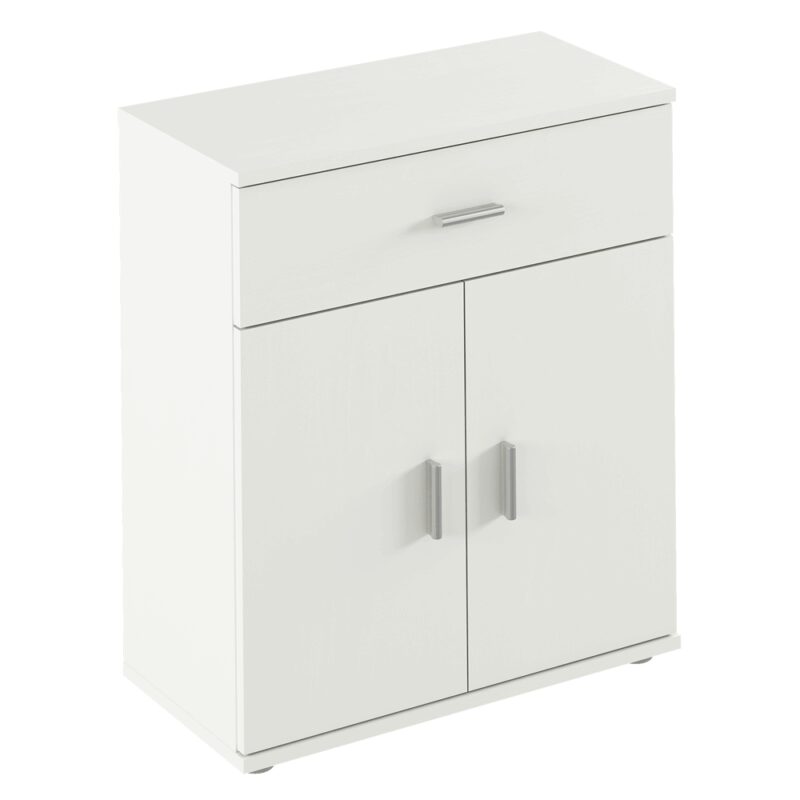 Komoda ADELI je ideálnym riešením pre všetkých, ktorí hľadajú kompaktný a zároveň štýlový úložný priestor. Vďaka svojmu jednoduchému a čistému dizajnu v bielej farbe sa ľahko hodí do moderných aj tradičných interiérov. Jej univerzálny vzhľad z nej robí praktický doplnok do spálne, predsiene, obývacej izby alebo detskej izby. Napriek menším rozmerom ponúka dostatok priestoru na uloženie vecí každodennej potreby.Komoda je vybavená dvoma dvierkami a jednou zásuvkou, ktoré sa pohodlne otvárajú pomocou strieborných úchytov. Za dvierkami sa nachádza praktická polica, vhodná napríklad na oblečenie, knihy alebo iné drobnosti. Horná plocha komody poskytuje ideálny priestor pre dekorácie, kvety alebo rámčeky s fotografiami. Celá konštrukcia je vyrobená z odolnej laminovanej drevotriesky, ktorá sa ľahko udržiava a je odolná voči každodennému opotrebeniu.Okrem príjemného vzhľadu oceníte aj kvalitné spracovanie slovenskej výroby. Komoda ADELI sa dodáva v rozloženom stave s prehľadným návodom na jednoduchú montáž. Vďaka svojim kompaktným rozmerom sa hodí aj do menších priestorov a ponúka praktické riešenie pre prehľadné usporiadanie vecí.Parametre a špecifikácie: