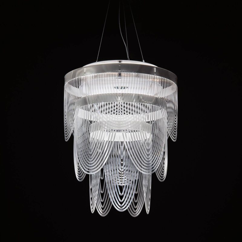 Slávnostné závesné svietidlo vyrobené z technopolyméru od Bruna Rainaldiho Závesná lampa Ceremony je nádherný chválospev na ženskosť. Jeho dizajn, zložený z mnohých klenutých prvkov, vyzerá ako jednotlivé retiazky a pripomína sukňu a tanec, perlový náhrdelník alebo zalamovanie vodopádového goliera na dekolte. Svetelné zdroje sú distribuované v tienidlo na lampu vyrobenom z jednotlivých prvkov technopolyméru a dodávajú žiarovke punc dramatickosti a beztiaže a pôsobivej prítomnosti. Štruktúrovaný povrch materiálov zaisťuje príťažlivú difúziu svetla dookola. Podľa orientácie jednotlivé prvky tienidla rozbíjajú svetlo a smerujú ho rôznymi smermi. Ľahké a živo vyzerajúce svietidlo šíri aj po vypnutí príjemnú atmosféru v každej miestnosti. Široká škála štýlov zariaďovania, vrátane tých moderných, je perfektne doplnená a efektívne osvetlená závesnou lampou Ceremony. Ako obzvlášť praktický sa osvedčil magnetický systém vyvinutý spoločnosťou Slamp , pomocou ktorého je možné tienidlo na lampu rýchlo a ľahko vybrať zo suspenzie a Slamp na čistenie. Slamp založil v roku 1992 Roberto Ziliani a sídli v Ríme. Udržateľnosť má pri výrobe dizajnérskych žiaroviek vysokú prioritu, ktorá sa prejavuje vo vlastnom vývoji odolných materiálov. Súčasti svietidiel sa vyrábajú rezaním za studena bez emisií CO². Od roku 2020 sa zvyšky z výroby a spracovania už nielen recyklujú, ale sa darujú spoločnostiam, ktoré vyrábajú búdky pre čmeliaky.