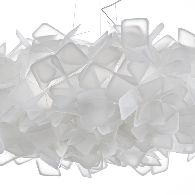 Dizajnová prívesná lampa Clizia – umelecké dielo z priehľadných listov Závesné svietidlo Clizia sa skladá z okrúhleho tienidlo na lampu zloženého z nespočetného množstva nepravidelne usporiadaných listov z priehľadného plastu. V kombinácii so žiarovkami, ktoré majú byť umiestnené vo vnútri, zaisťujú atmosférické účinky svetla a tieňa. Ide o hľadanú súčasť konceptu Adriana Racheleho, ktorý chce s Cliziou realizovať prirodzenú hru tieneného a lámaného slnečného žiarenia. Závesná lampa pripomína korunu stromu alebo oblak osvetlený slnkom. Okrem precízneho remeselného spracovania s bezchybným vzhľadom a nezávislého kreatívneho konceptu Slamp taliansky výrobca Slamp mimoriadny význam použitiu materiálov a techník, ktoré vyvinuli sami. Spoločnosť Clizia Slamp proprietárne plasty a vlastnú konzolu MagneticSystem® od spoločnosti Slamp.