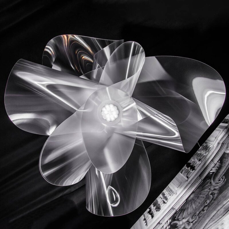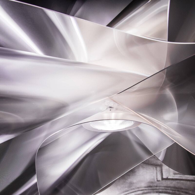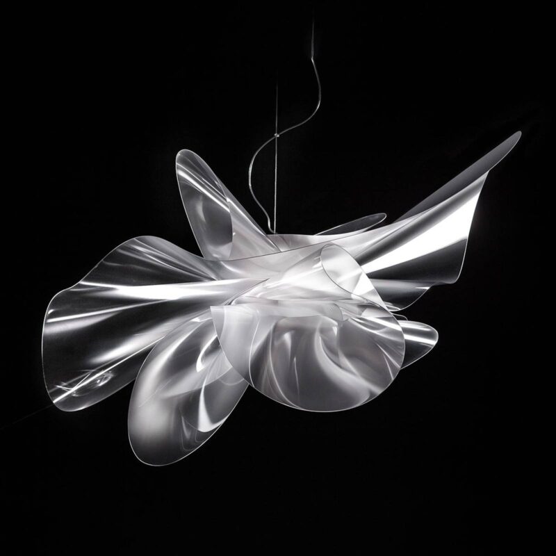 Závesná lampa Étoile – skutočná hviezda Étoile znamená „hviezda“ a dizajnérska lampa od Adriana Racheleho má tento názov oprávnene. Transparentný, hranolový materiál, z ktorého je tienidlo na lampu vyrobené, dodáva žiarovke skutočne lesklú a žiarivú auru. Lentiflex® je názov plastu, ktorý bol špeciálne vyvinutý produktovými dizajnérmi a inžiniermi v spoločnosti Slamp na výrobu svetiel. Vyznačuje sa osobitnou flexibilitou, ktorá umožňuje dizajnérom svojou tvorbou smerovať k novým priekopníkom. Lentiflex® hrá kľúčovú úlohu aj pri svetelnom efekte Étoile. Svetelné lúče sú distribuované mierne prizmatickým materiálom šumivým a žiarivým spôsobom v miestnosti, pričom LED diódy sú umiestnené v spodnej časti tienidla a v hornej časti. Toto umožňuje všestranné osvetlenie miestnosti. Dizajn dáždnika je inšpirovaný ladnými a živými pohybmi tanečníkov. Slamp sú vyrábané ručne v Taliansku. – stmievateľné: PWM, 1-10 V