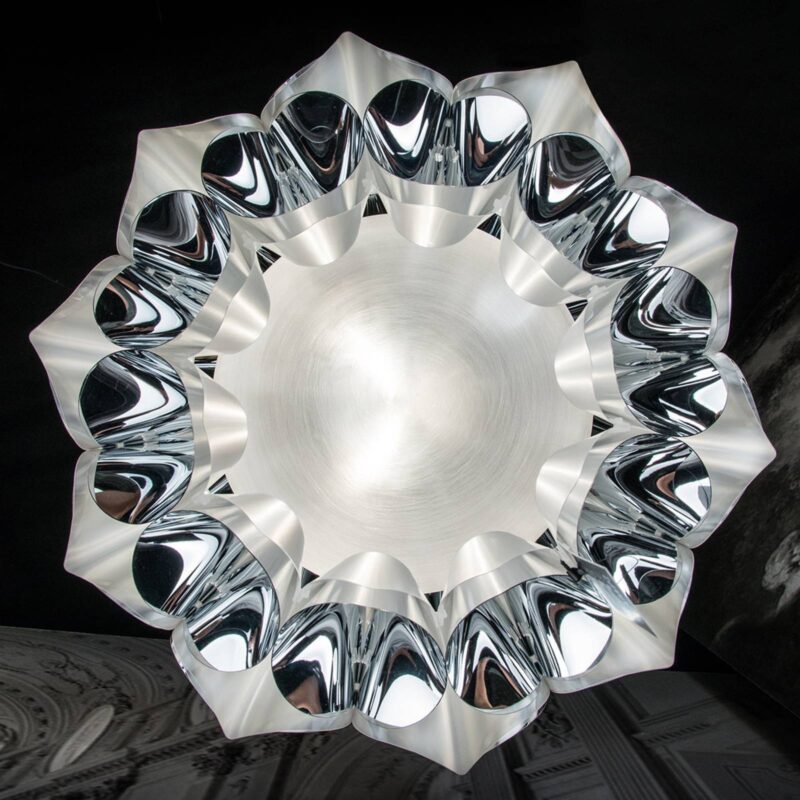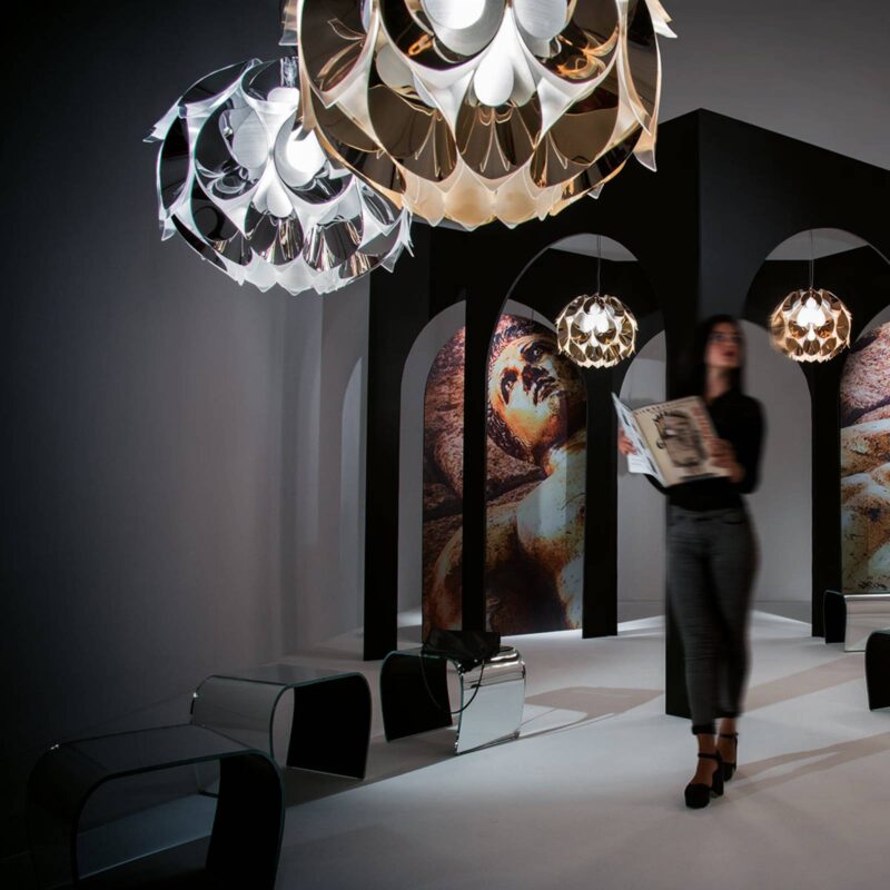 Dizajnérska závesná lampa Flora U tejto závesnej lampy sa dizajnér Zanini de Zanine nechal inšpirovať okvetnými lístkami, pretože presne takto pôsobia prvky s kovovým povrchom, ktoré obklopujú satinovaný plastový difuzér. Nielenže to vytvára jedinečne krásny vzhľad, ale zapnuté svietidlo vytvára aj jedinečný svetelný efekt, ktorý je charakterizovaný odrazmi a hravosťou svetla a tieňa. Vizionárske dizajnérske svietidlá vyrobené v Taliansku – Slamp Taliansku dizajnérsku spoločnosť Slamp, ktorá má sídlo v Ríme, založil začiatkom 90. rokov dvadsiateho storočia Roberto Ziliani. Ziliani už pracoval ako dizajnér, keď konečne objavil svoju vášeň pre možnosti svetla. Najvyššie nároky na materiály, spracovanie a kvalitu V spoločnosti Slamp sa osobitný dôraz kladie na vývoj inovatívnych materiálov. Okrem prírodných a tradičných materiálov, ako sú koža, meď, krištáľ alebo ušľachtilá oceľ, spoločnosť Slamp pracuje aj s exkluzívnymi a výlučne patentovanými materiálmi, ako sú Cristalflex®, Opalflex® alebo Lentiflex®. Dosahuje s nimi jedinečné svetelné efekty. Napríklad Lentiflex® pripomína vodu, ktorá mení farbu v závislosti od zorného uhla. Tieto materiály, ktoré boli vyvinuté v rámci firmy, a výsledné svietidlá jasne vyjadrujú silu spoločnosti Slamp. Patria medzi ne okrem iného vysoký stupeň inovácie, tvorivosti a originality, ako aj veľký cit pre pôsobenie svetla.