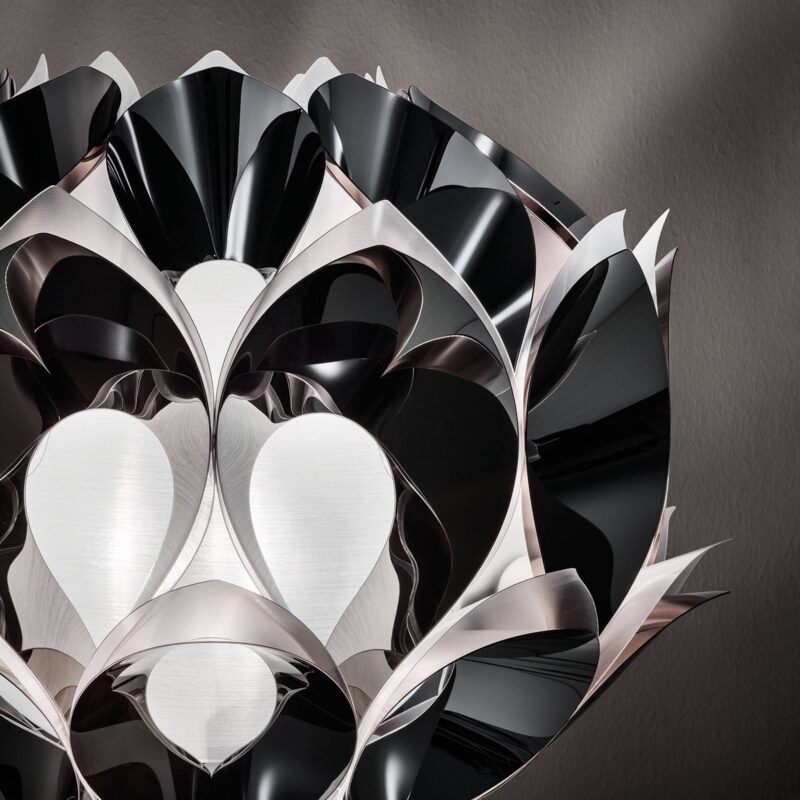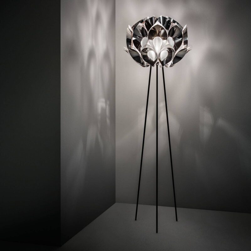 Flora – dizajnová stojaca lampa so zvláštnou charizmou Názov to predpokladá – tvorca série žiaroviek Zanini de Zanine sa pri návrhu stojaca lampa Flora inšpiroval prírodou. Okolo sférického difúzora sú jednotlivé prvky z materiálu Pewterflex®, plastu s lesklým povrchom s cínovou farbou, vyvinutého samotným výrobcom Slamp , zoradené tesne vedľa seba. Tieto prvky spôsobujú, že celý tienidlo na lampu stojaca lampa vyzerá ako veľká kytica kvetov. Jedinečné svetelné efekty sú vytvárané odrazmi a hrou svetla a tieňov, ktoré ponoria každú miestnosť do neporovnateľného prostredia. Okrem materiálu na obrazovku vyvinul patentované zapínanie pomocou magnetickej Slamp aj výrobca Slamp . Táto magnetická technológia umožňuje ľahké odstránenie dáždnika z rámu statívu. Vizionárske dizajnérske Slamp vyrobené v Taliansku – Slamp Slamp založil v roku 1992 Roberto Ziliani po tom, čo objavil svoju vášeň pre možnosti svetla. Najvyššie nároky na materiál, spracovanie a kvalitu Slamp pripisuje osobitný význam vývoju nových materiálov. Cristalflex®, Opalflex®, Pewterflex® alebo Lentiflex® sú niektoré zo špeciálne vyvinutých firmou Slamp a patentovaných materiálov, z ktorých sa vyrábajú dizajnové žiarovky výrobcu. S týmito novými materiálmi je možné dosiahnuť jedinečné svetelné efekty. Sami vyvinuté materiály a výsledné svetlá jasne vyjadrujú silné stránky modelu Slamp . Patrí sem okrem iného vysoká úroveň inovácie, tvorivosti a originality, ako aj úžasný cit pre účinky svetla.
