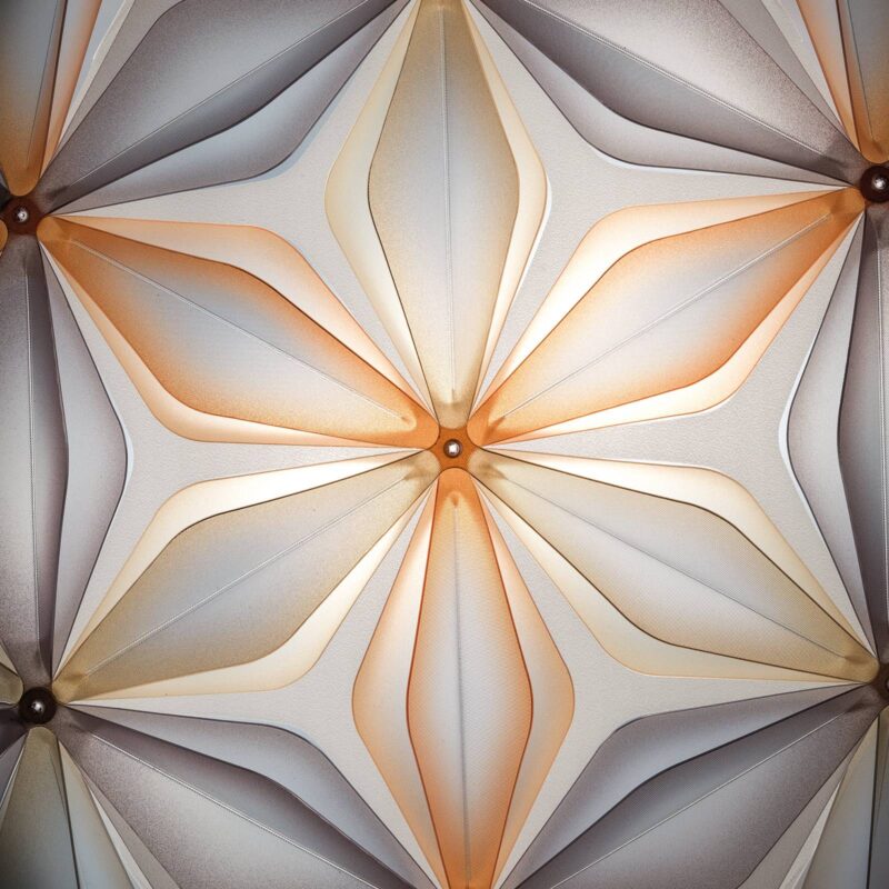 Stropné svetlo La Vie – Kvet života Pri stropnom svietidle La Vie sa dizajnér Adriano Rachele inšpiroval kvetom života. Duchovná symbolika dodáva lampe auru energie a harmónie. Talianska dizajnérska kováčska dielňa Slamp kladie veľký dôraz na inovácie. Spoločnosť Slamp preto vyvíja nové kompozície s technopolymérmi, aby dokonale realizovala svoje vízie svietidiel. Okrem možností spracovania ponúkajú použité materiály Lentiflex® a Opalflex® aj mnoho ďalších výhod. Vďaka tomuto materiálu sú svietidlá okrem iného odolné, ľahké a odolné voči UV žiareniu. Magnetické upevnenie a ručne vyrobené zástrčkové spoje zabraňujú používaniu skrutiek a lepidiel a uľahčujú výmenu svetelného zdroja (nie je súčasťou dodávky). Séria La Vie sa dá namontovať aj ako nástenné svietidlo.