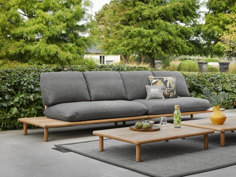 Štýlová 2-sedačka Sling v nadčasovom dizajne v kombinácii teakového dreva s pohodlným vankúšom.