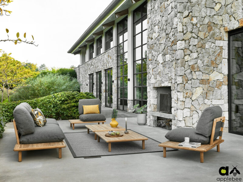 Štýlová 2-sedačka Sling v nadčasovom dizajne v kombinácii teakového dreva s pohodlným vankúšom.