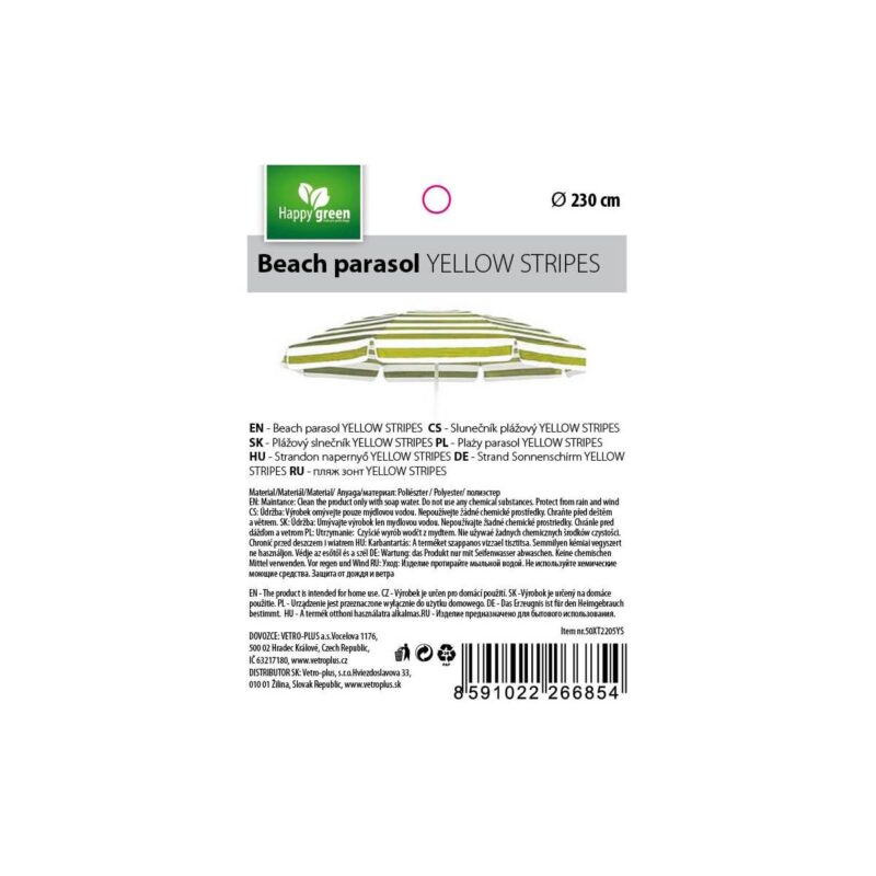 Slunečník VTP 50XT2205YS plážový 230 cm, green-yellow