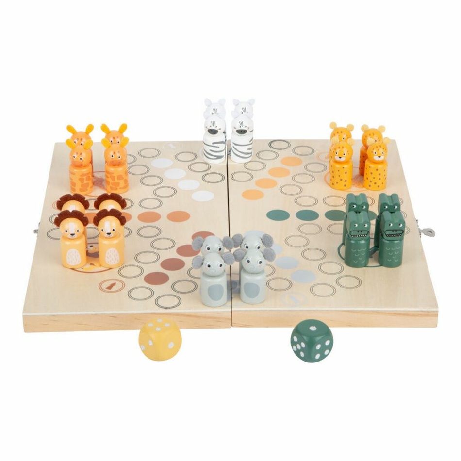 Skvelá zábava až pre 6 hráčov každého veku! V tejto klasickej hre vyrobenej z dreva musíte dostať svoje zvieratká zo savany do domčeka. Zebra, žirafa, krokodíl, slon, leopard a lev vyzerajú skoro ako pravé. Tieto figúrky sú vhodné pre deti, sú drevené a majú plyšové prvky.Herná doska je praktická, po zložení sa z nej opäť stane úložný box. Dve herné kocky vám ukážu, o koľko polí sa môžete posunúť. Klasická stolná hra v trendy dizajne, ktorá deti naučí počítať, spoznávať farby a zvieratá. Deti sa tiež naučia prehrávať. Ideálne aj na cesty.Hra pre 2-6 hráčov, herná doska, 24 figúrok a 2 kocky.Rozmery: 26 x 24 x 1,5 cm. Výška figúrky: 3,5 cm, priemer: 1,5 cm.