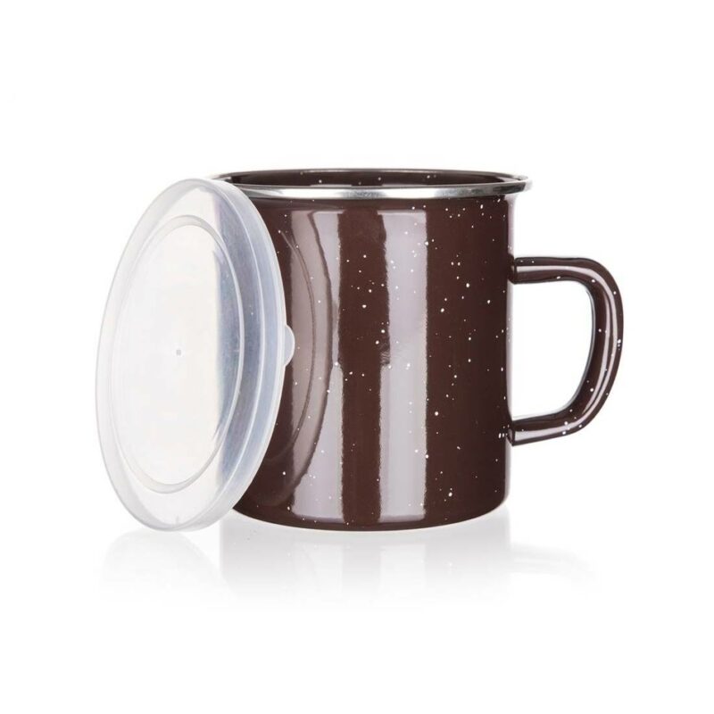 Praktický a užitočný hrnček GRANITE s praktickým plastovým viečkom je vyrobený z karbónovej ocele, má vonkajší a vnútorný smaltovaný nástrek a nehrdzavejúci okraj.