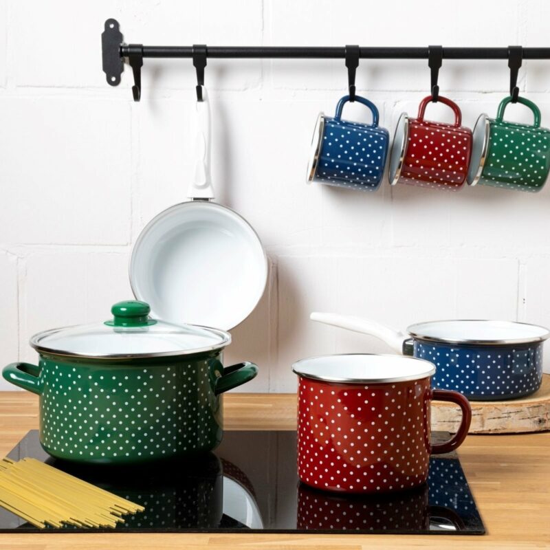 Smaltovaný hrniec, ktorý na prvý pohľad zaujme svojím vzhľadom. Hrniec v zelenom prevedení s bielymi bodkami sa hodí do modernej aj tradičnej kuchyne, na chalupu, kde evokuje dokonale tradičný gazdovský štýl. Súčasťou je aj sklenená pokrievka s plastovým úchytom, vďaka ktorej môžete mať varenie po celý čas pod kontrolou.